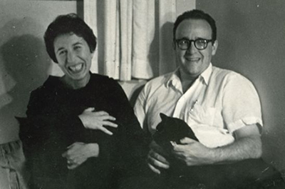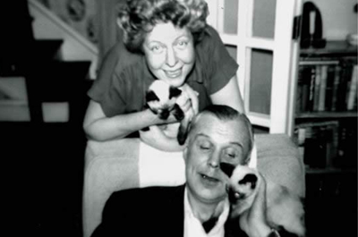 With Dorothy and cats, 1960 in Hyde Park, Chicago |