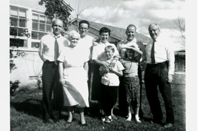 The Monroe family in California (John's first introduction to the joy of cats) |